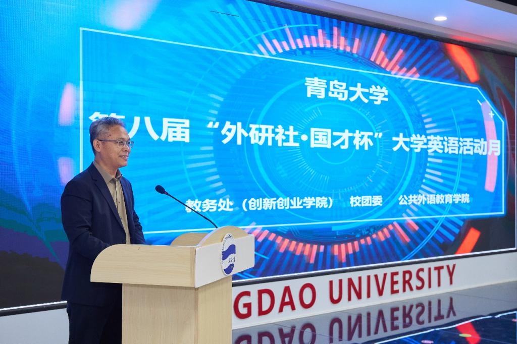 10月16日下午,青岛大学第八届“外研社•国才杯”大学英语活动月在浮山校区大学生科创文化中心二楼青年大讲堂隆重开幕。教务处副处长吕途出席开幕式并致辞。杏吧传媒