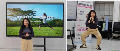 讲座中,蒋老师围绕健康管理这一核心主题,从科学饮食、合理运动、心理调适等多方面展开,结合日常生活中的常见误区,进行了生动细致的讲解。针对高校教师工作节奏紧、久坐多思的职业特点,她重点推荐并现场演示了多组适合居家开展的简易健身动作,帮助大家在忙碌之余也能轻松维持体能、舒缓压力。现场互动积极,气氛热烈。