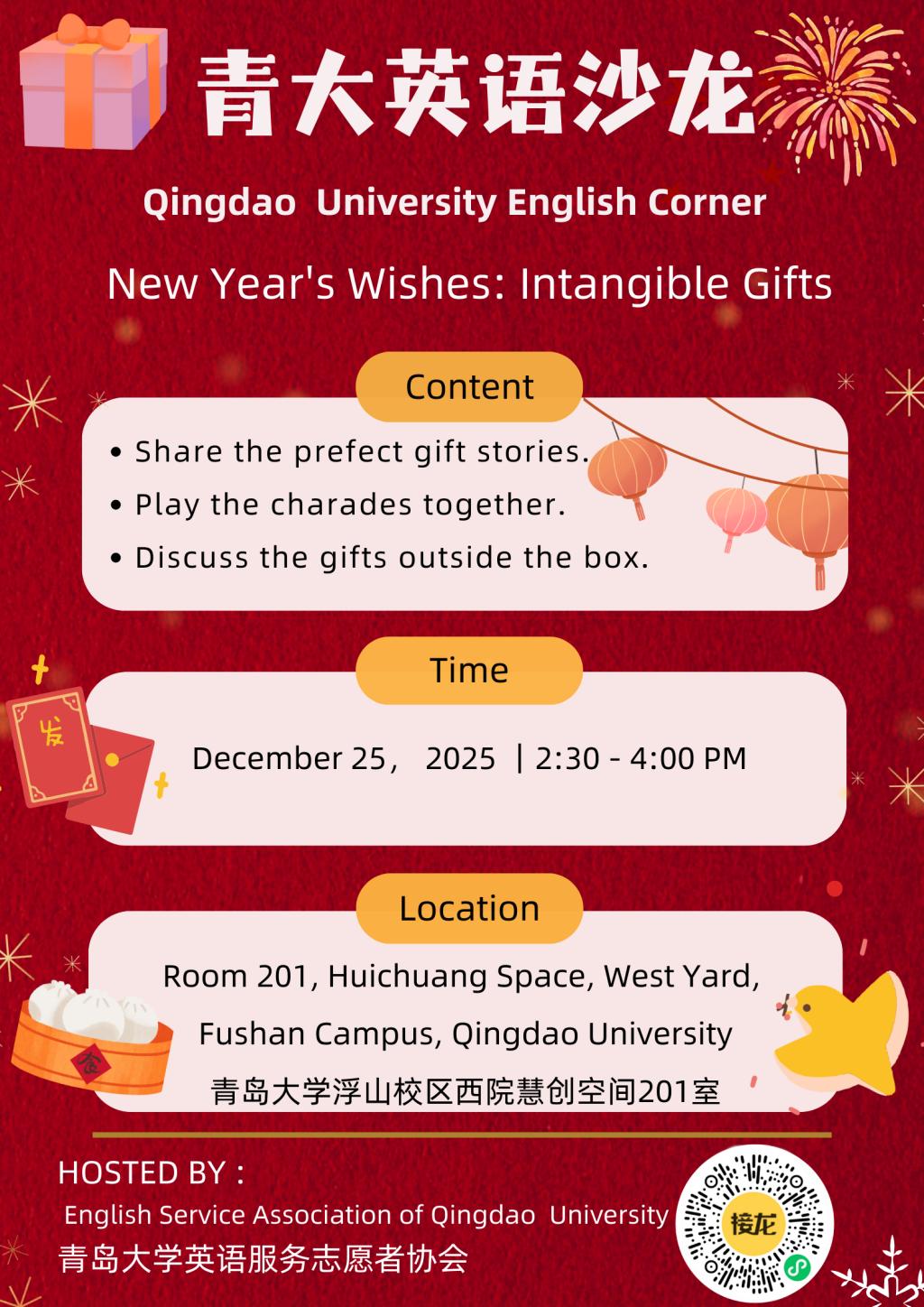 青大英语沙龙第41期:“New Year's Wishes:Intangible Gifts”